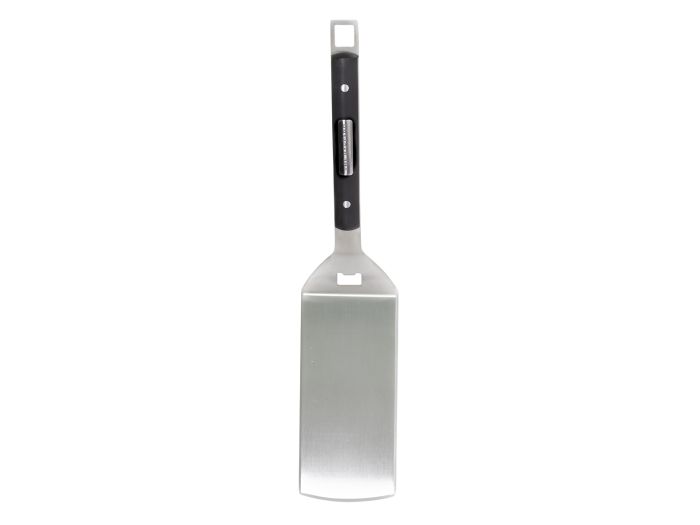 Si durante la barbacoa quiere beber una cerveza, puede abrir la botella de forma sencilla, ya que en el extremo de la espátula hay un abrebotellas.