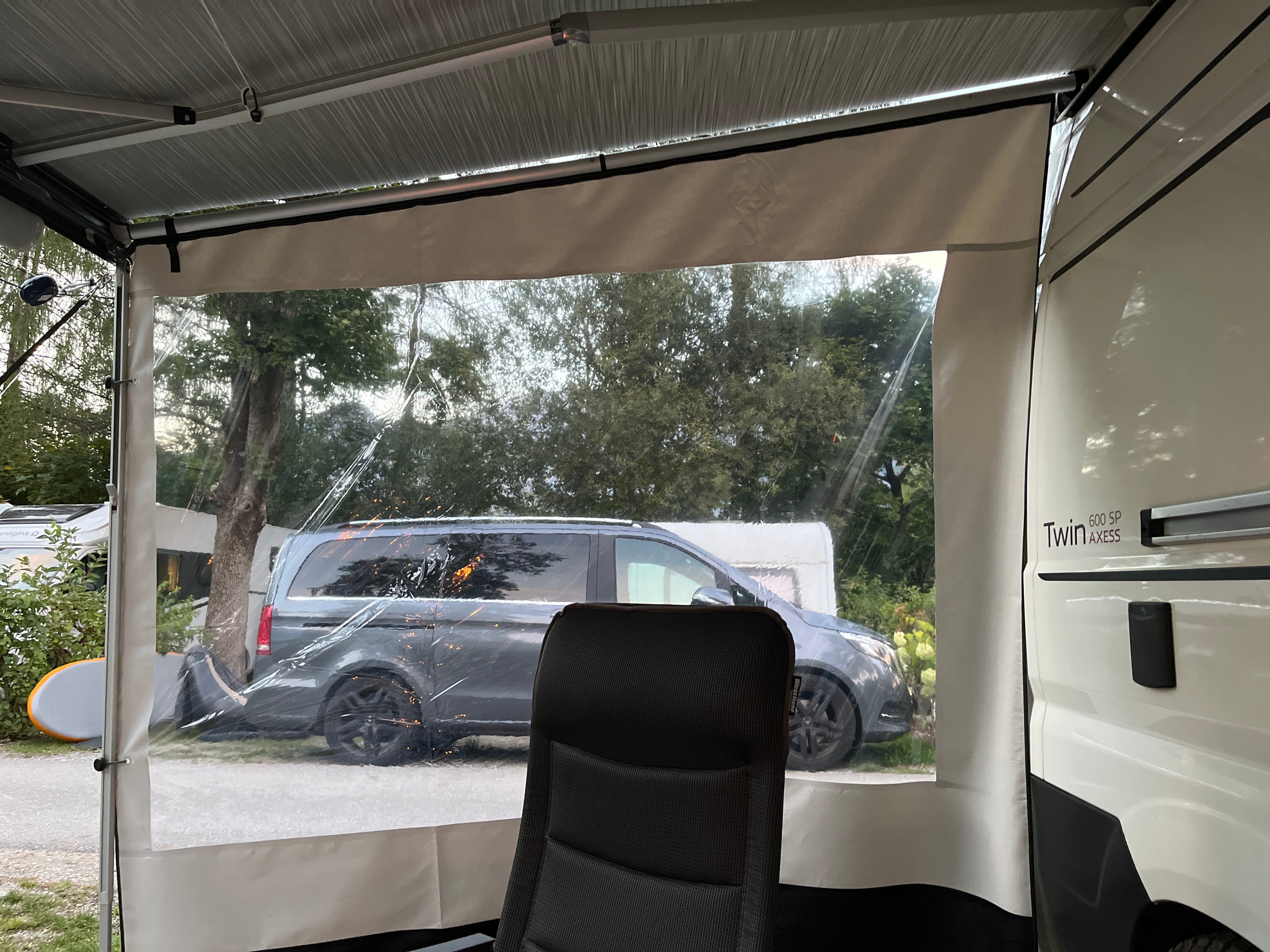 El Thule Rain Blocker es un lateral sencillo de PVC con ventana. El lateral se fija por medio de una varilla de tensión que viene estándar y se puede montar tanto a la derecha como a la izquierda del toldo.