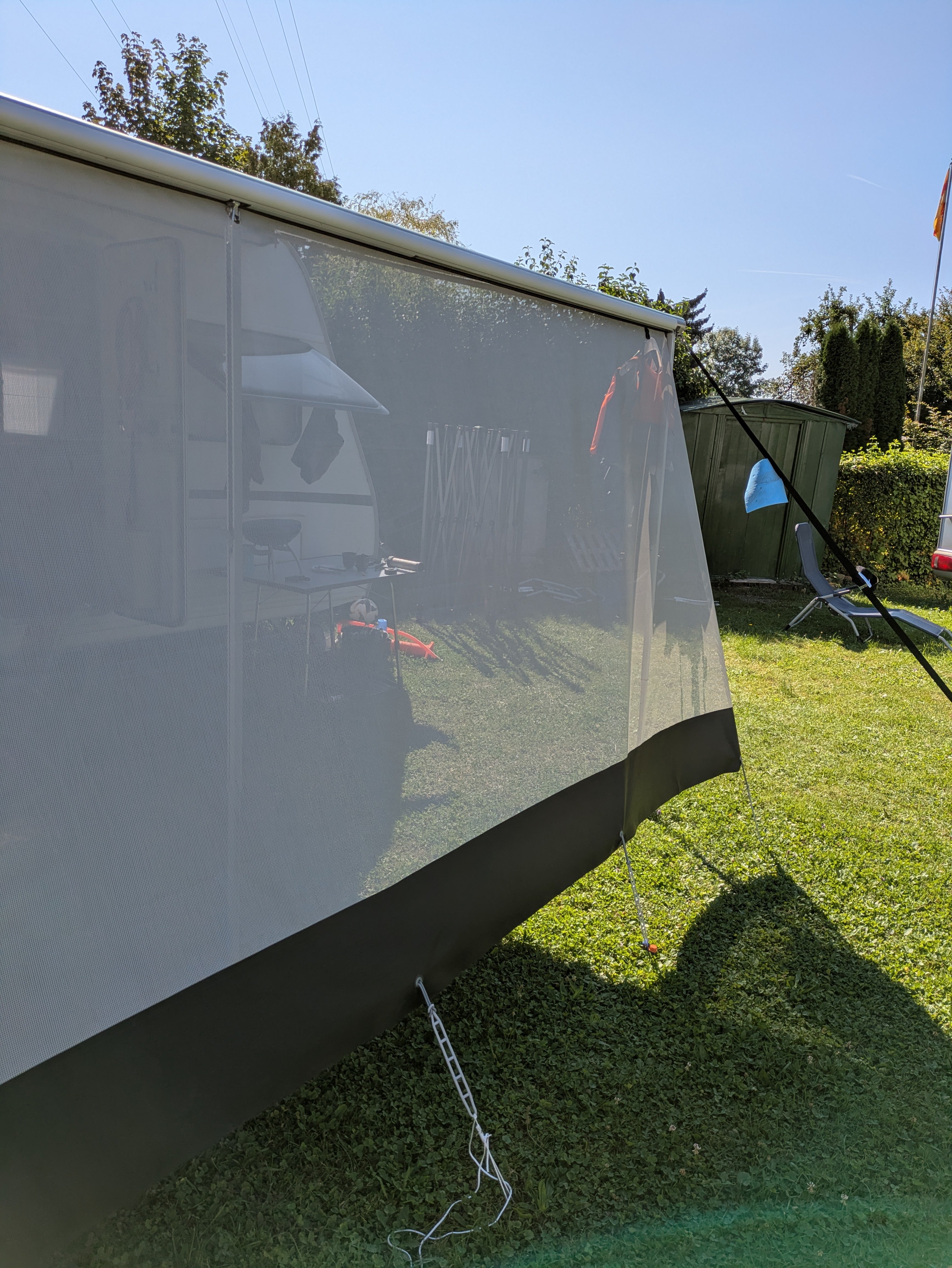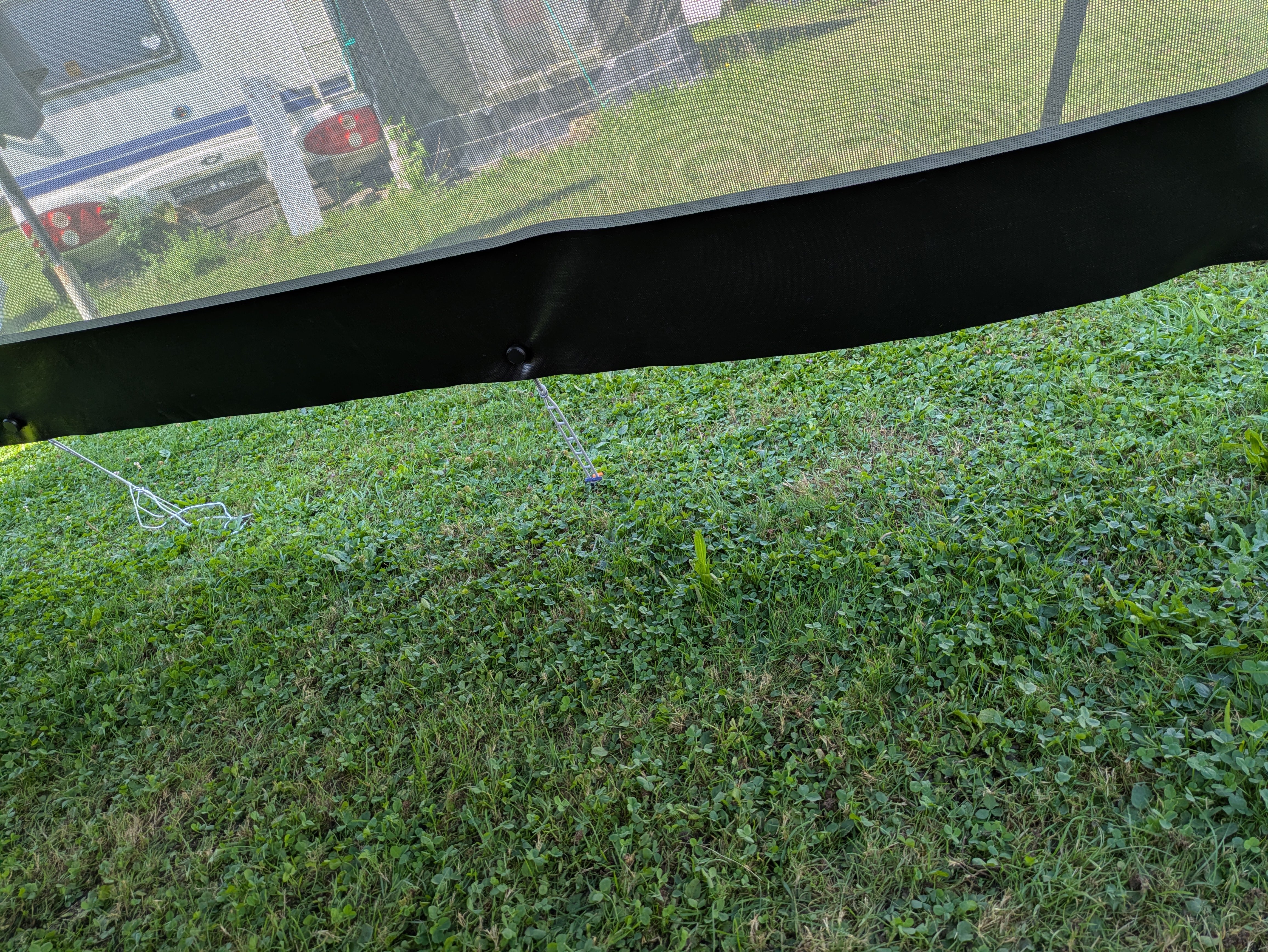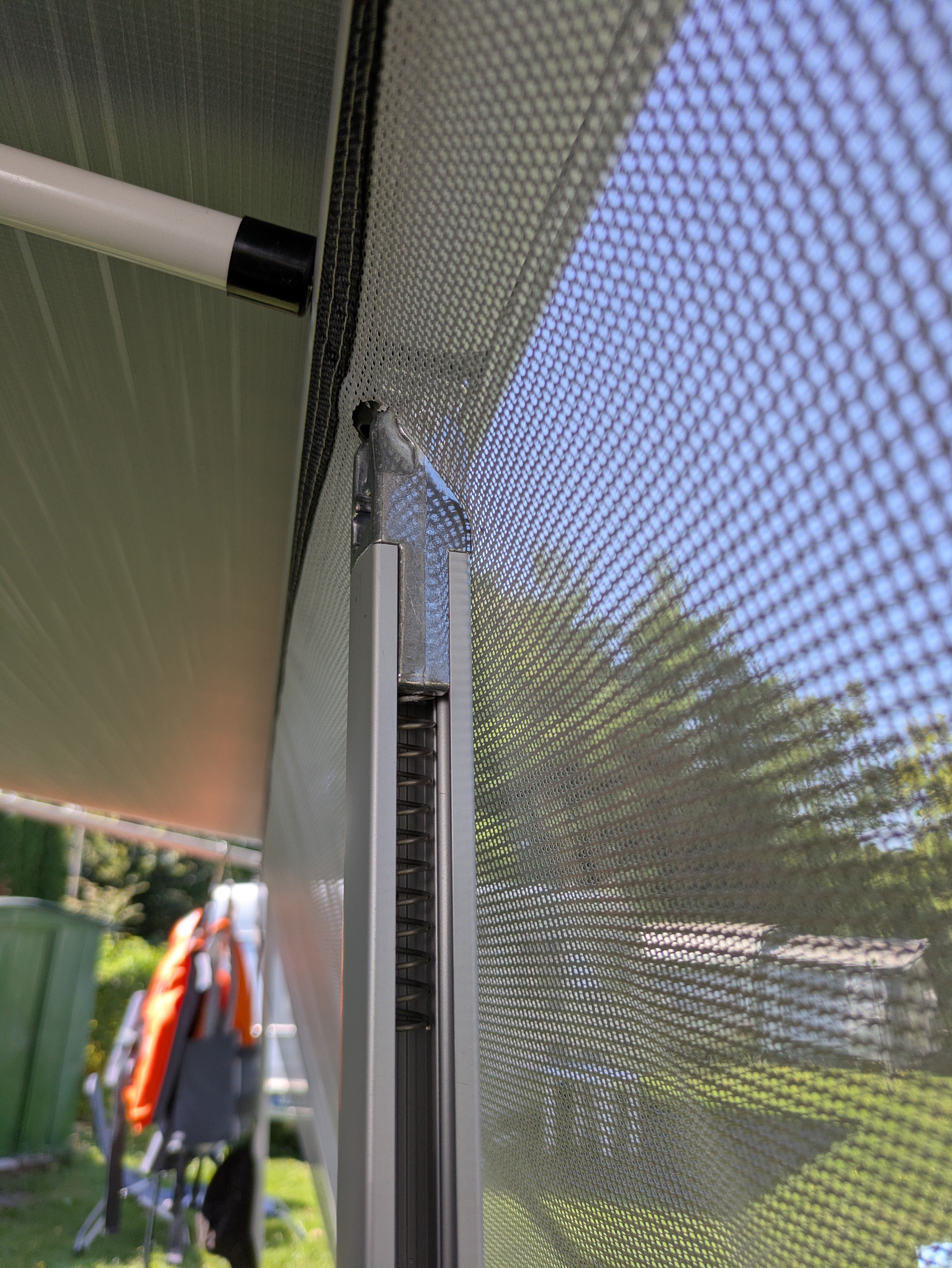 Para la fijación a la caravana necesita un cordel de 7 o de 8 mm y para la fijación a un toldo de casete necesita uno de 4, 5 ó 6 mm.