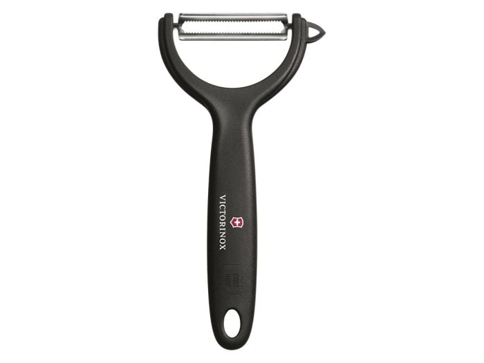 Pelar kiwis o tomates, por ejemplo, puede ser a veces muy complicado porque son muy resbaladizos. Para evitar que se corte accidentalmente, utilice el pelador de kiwis Swiss Classic de Victorinox. Este pelador ergonómico tiene un microcartucho especial en la hoja. La cuchilla no resbala, ni siquiera en superficies lisas, por lo que el pelar es muy fácil.