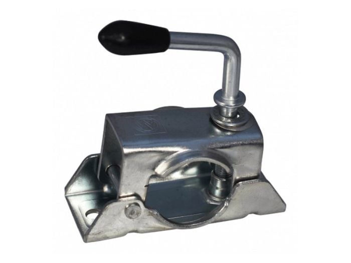 La abrazadera para rueda jockey es adecuada para ruedas que soportan 150 kg. Gracias a su construcción ligera es principalmente adecuado para remolques de eje sencillo o para remolques de eje doble ligero.